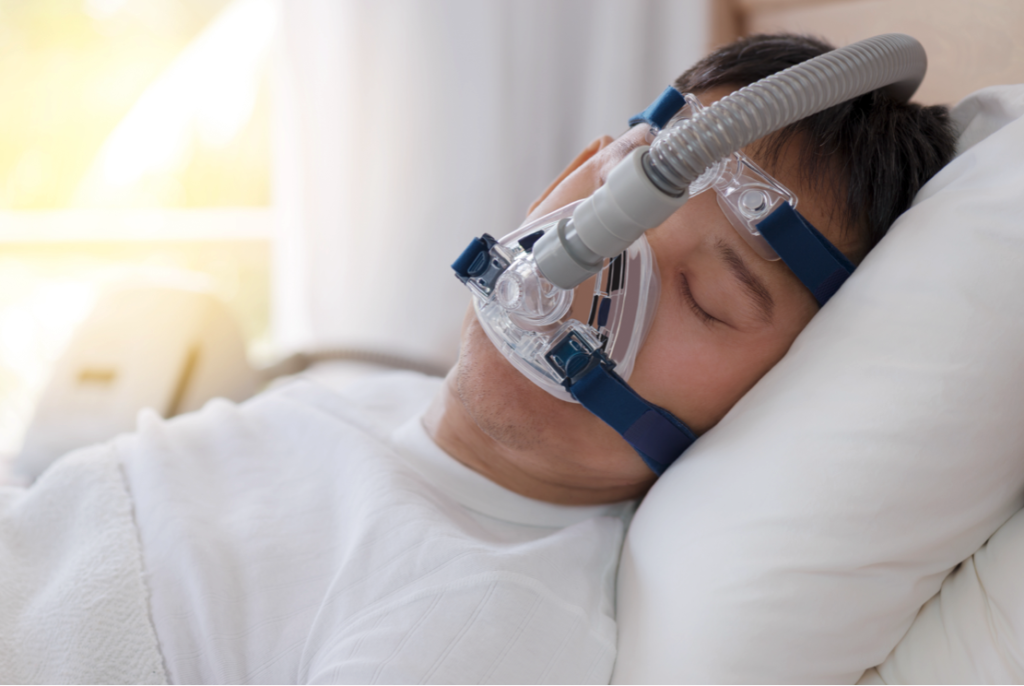 CPAP(シーパップ)療法は、中等度から重度のSASに対する標準的な治療法です。鼻もしくは口に酸素マスクのようなマスクをつけて、そこから圧力をかけた空気を送り込みます。これにより、狭くなった鼻や喉の部分を広げる効果があります。CPAP治療の特徴は以下の通りです。